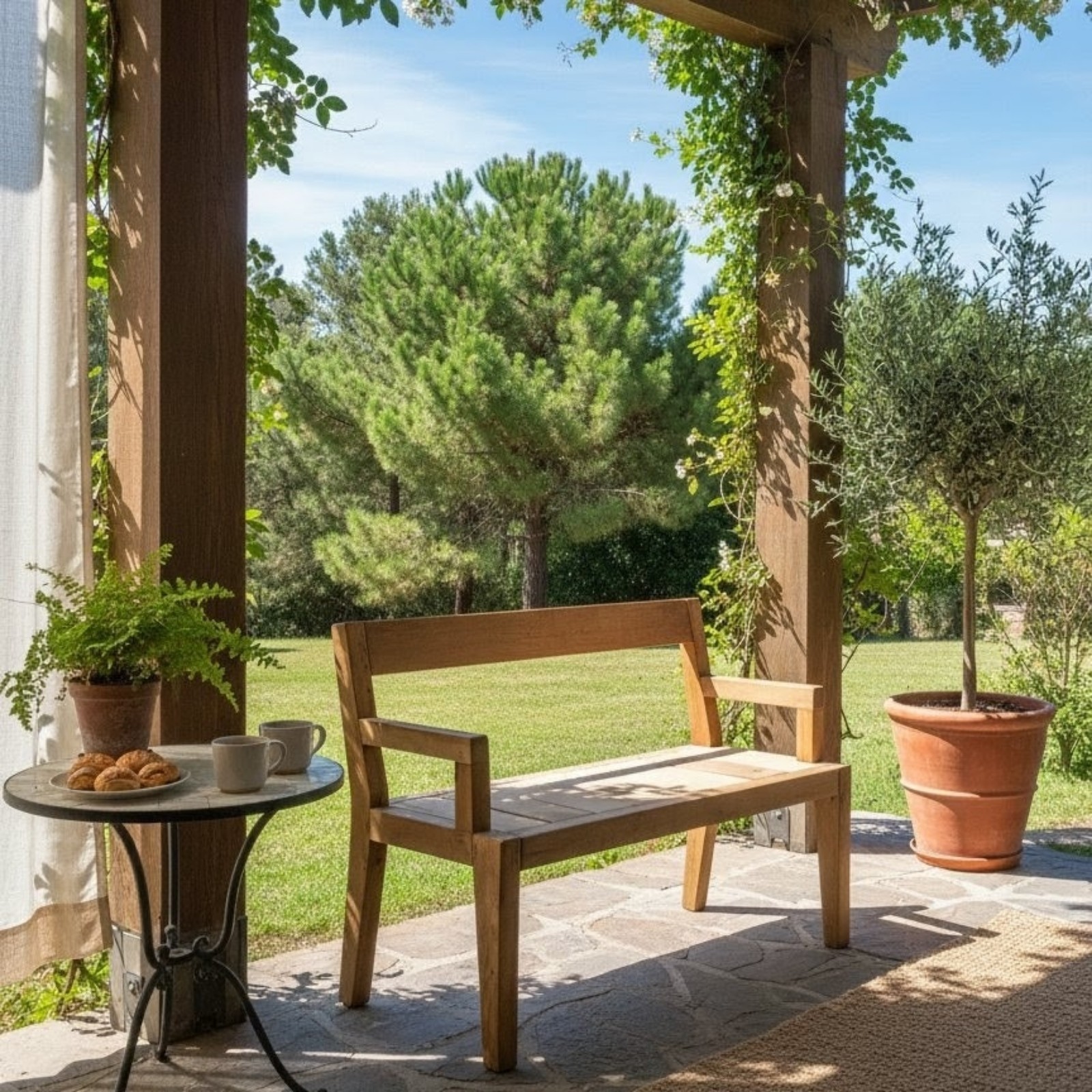Versatilidad de Uso: Este modelo es sumamente versátil. Gracias a su tratamiento y calidad de madera, es perfecto tanto para un living rústico como para una galería techada. Podés usarlo al natural para lucir la madera o añadir almohadones personalizados para elevar el confort.