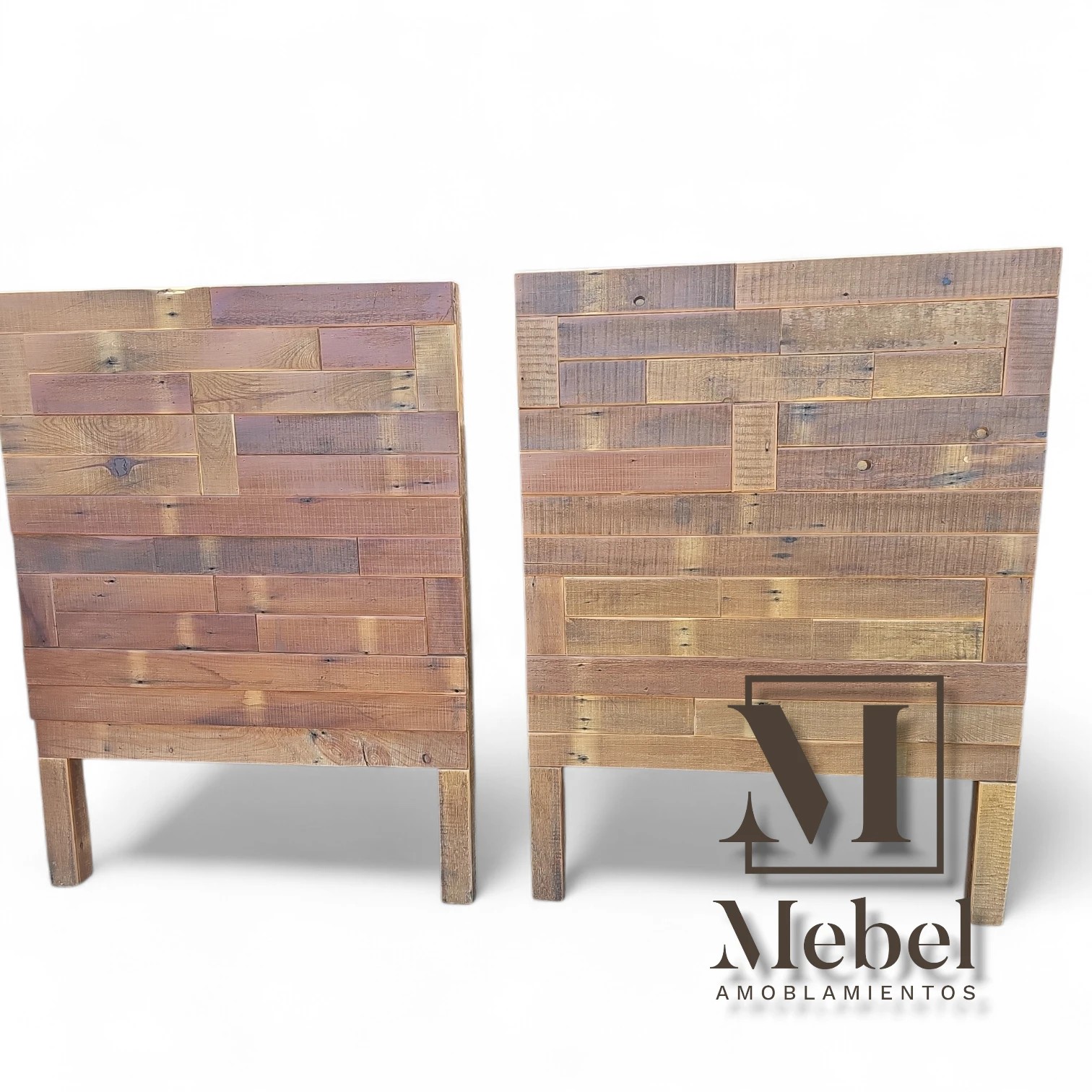 Par de respaldos rústicos para sommier de 80 cm en Pino Brasil reciclado. Piezas exclusivas fabricadas con madera recuperada de más de 100 años de antigüedad. Un toque de historia y calidez para dormitorios individuales.
