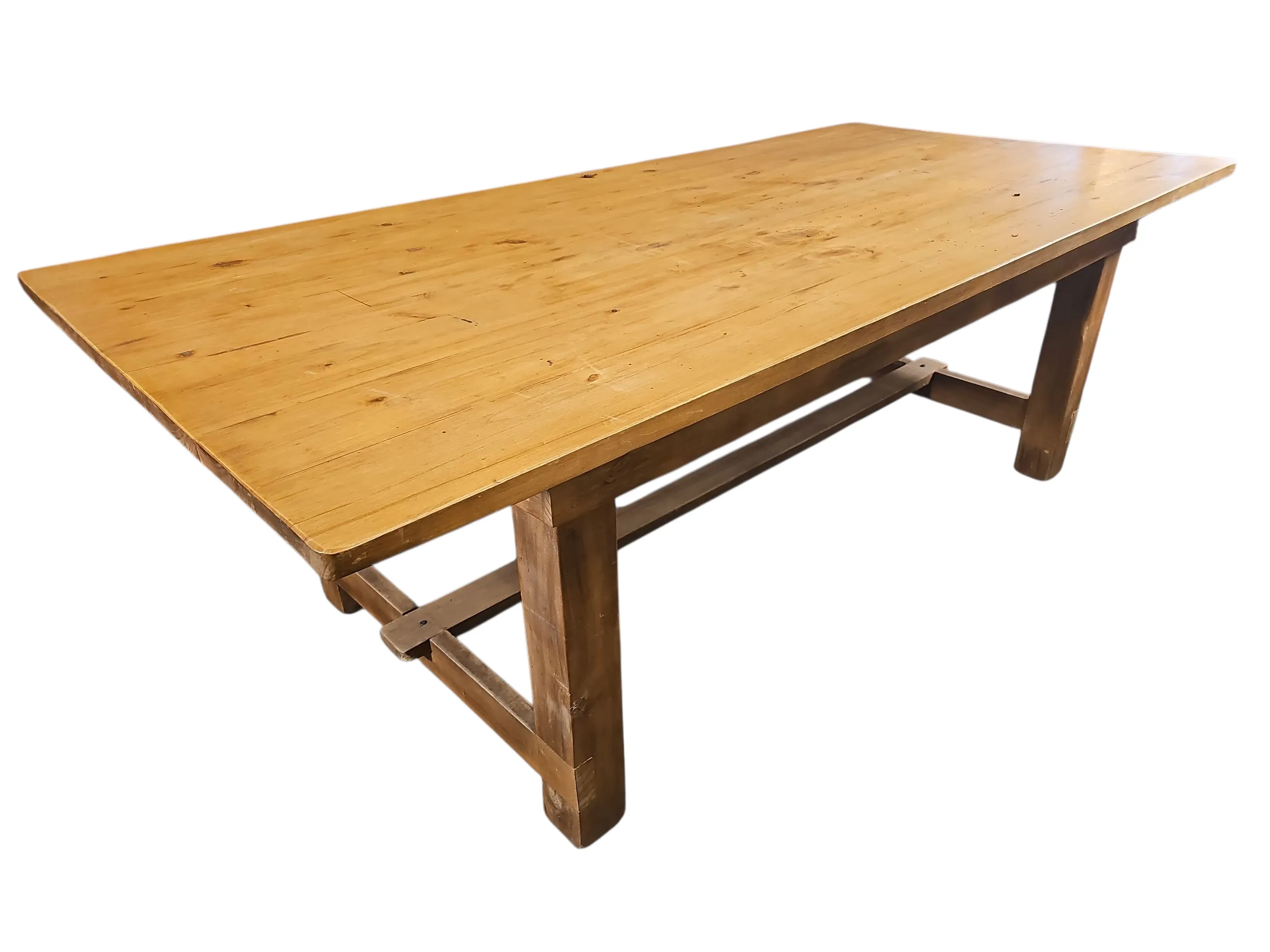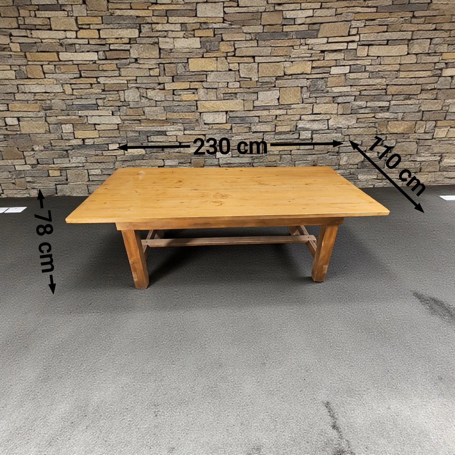 Mesón de álamo macizo con lustre natural, estilo rústico de campo. Medidas: 2,30 m x 1,10 m. Robusto, cálido y funcional.